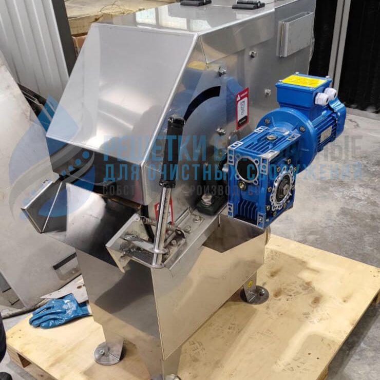Очистка сита от отходов осуществляется с помощью статического скребка. Все крупные включения попадают в камеру приема шлама и выводятся из нее самотеком или с помощью отжимного шнекового пресса.