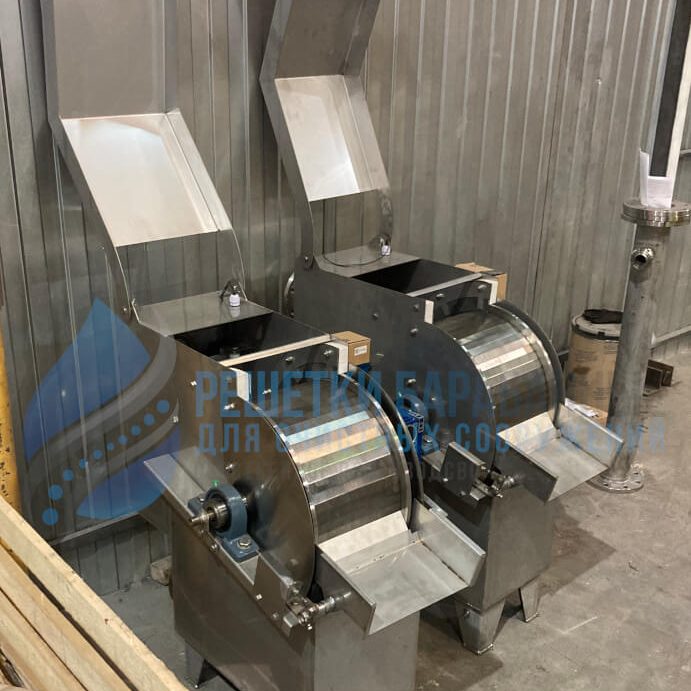 Из приемной камеры вода с включениями равномерно подается на барабан. Крупные включения и примеси размером от 0,5-5 мм (в зависимости от производительности) задерживаются на поверхности сита, а очищенный сток, сквозь прозоры, поступает в камеру приема очищенной воды.
